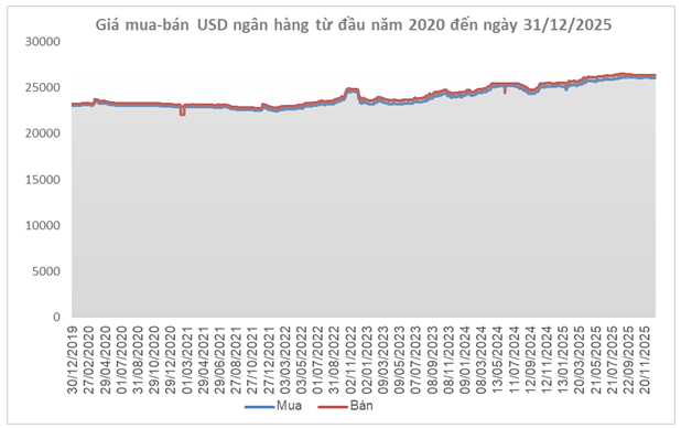 Trong tuần cuối cùng của năm 2025 (29-31/12), giá USD phục hồi trở lại trên thị trường quốc tế sau khi Cục Dự trữ Liên bang Mỹ (Fed) công bố biên bản cuộc họp tháng 12.