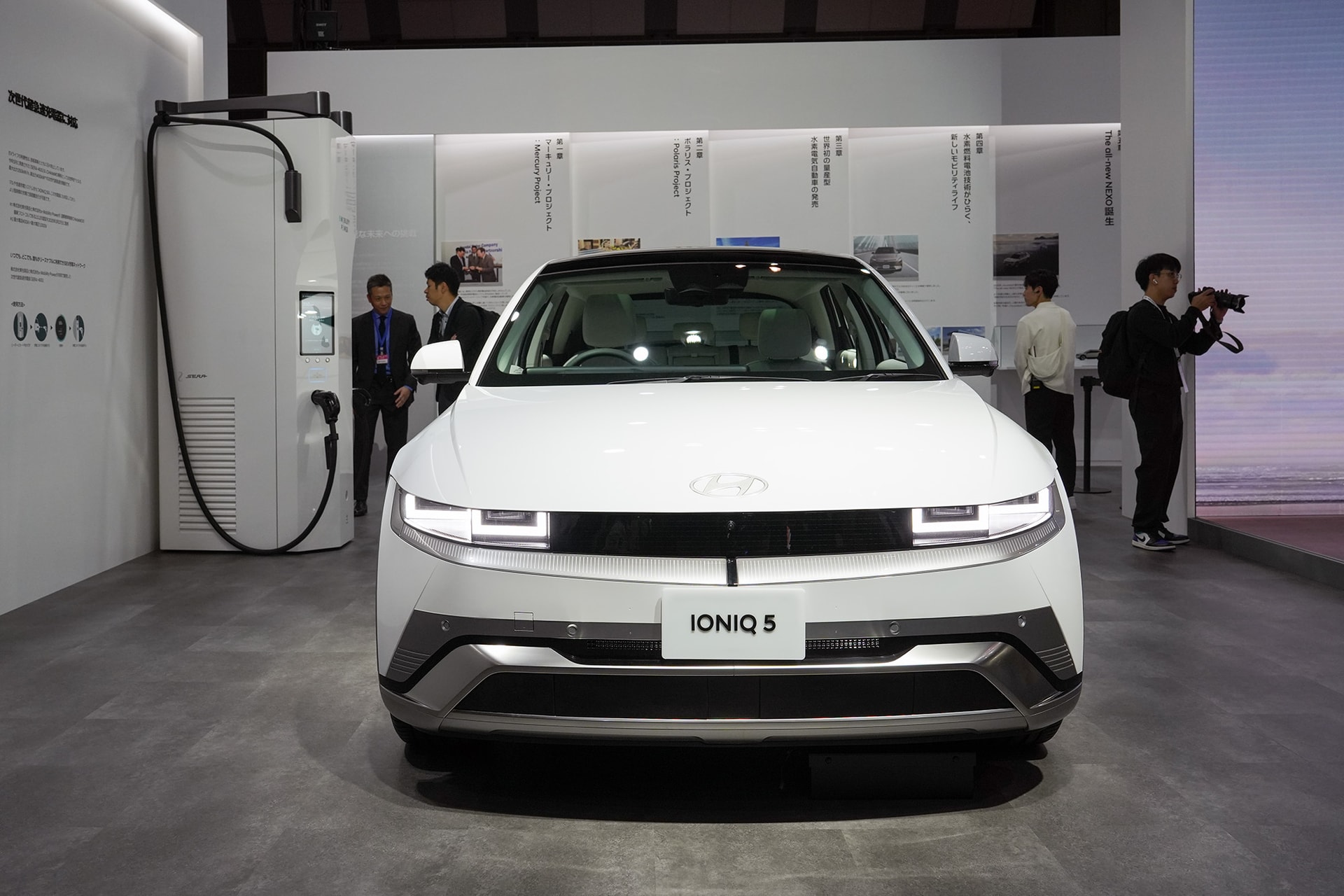 | Xe điện Hyundai IONIQ 5 trưng bày tại Triển lãm Di chuyển Nhật Bản 2025. Ảnh: Hoàng Linh. |