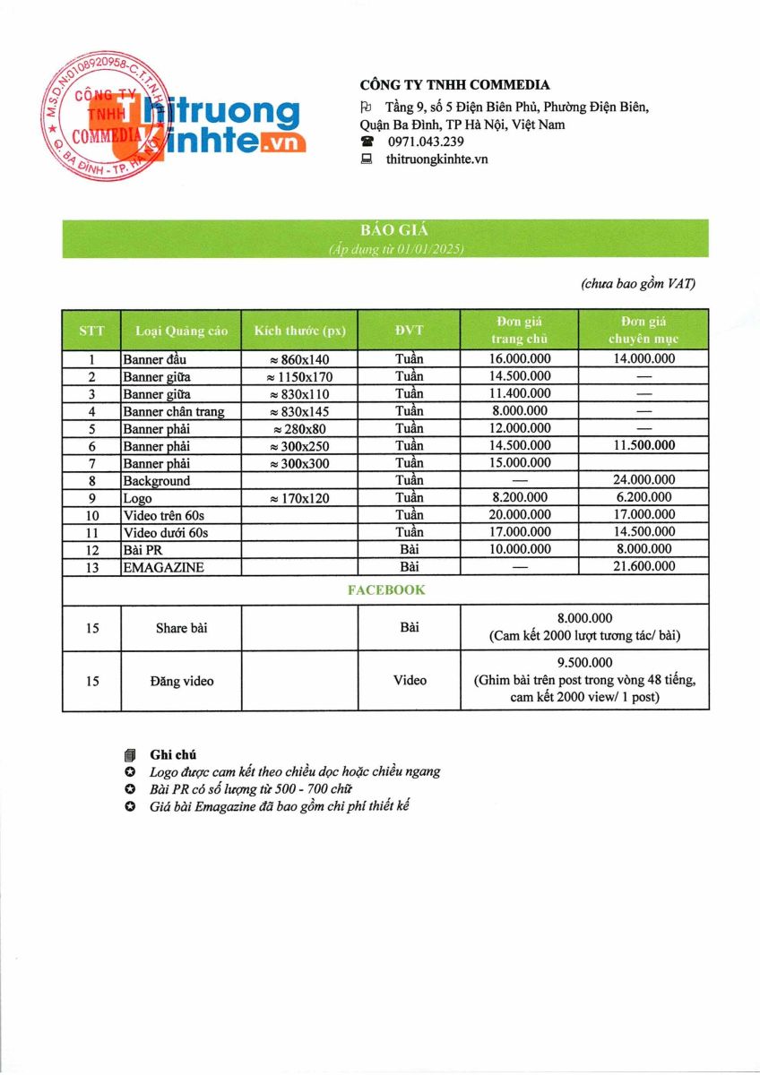 Báo giá quảng cáo website thitruongkinhte.vn