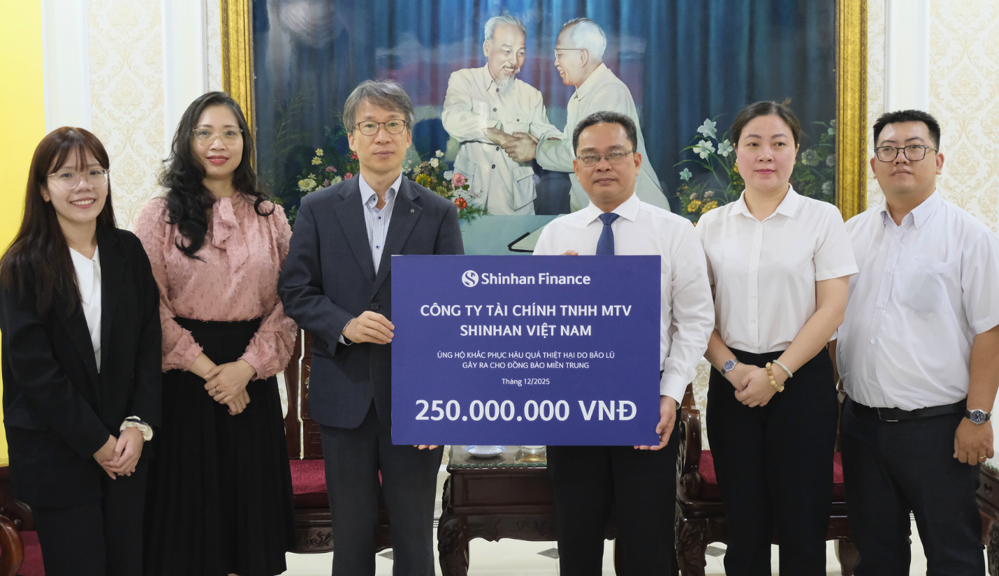 Tiếp tục kiên định với định hướng phát triển gắn liền trách nhiệm xã hội, trong tháng cuối năm 2025, Công ty Tài chính TNHH MTV Shinhan Việt Nam (Shinhan Finance) đã triển khai hoạt động hỗ trợ cộng đồng nhằm kịp thời chia sẻ khó khăn với đồng bào các tỉnh miền Trung chịu ảnh hưởng nặng nề bởi bão lũ trong những tháng vừa qua.