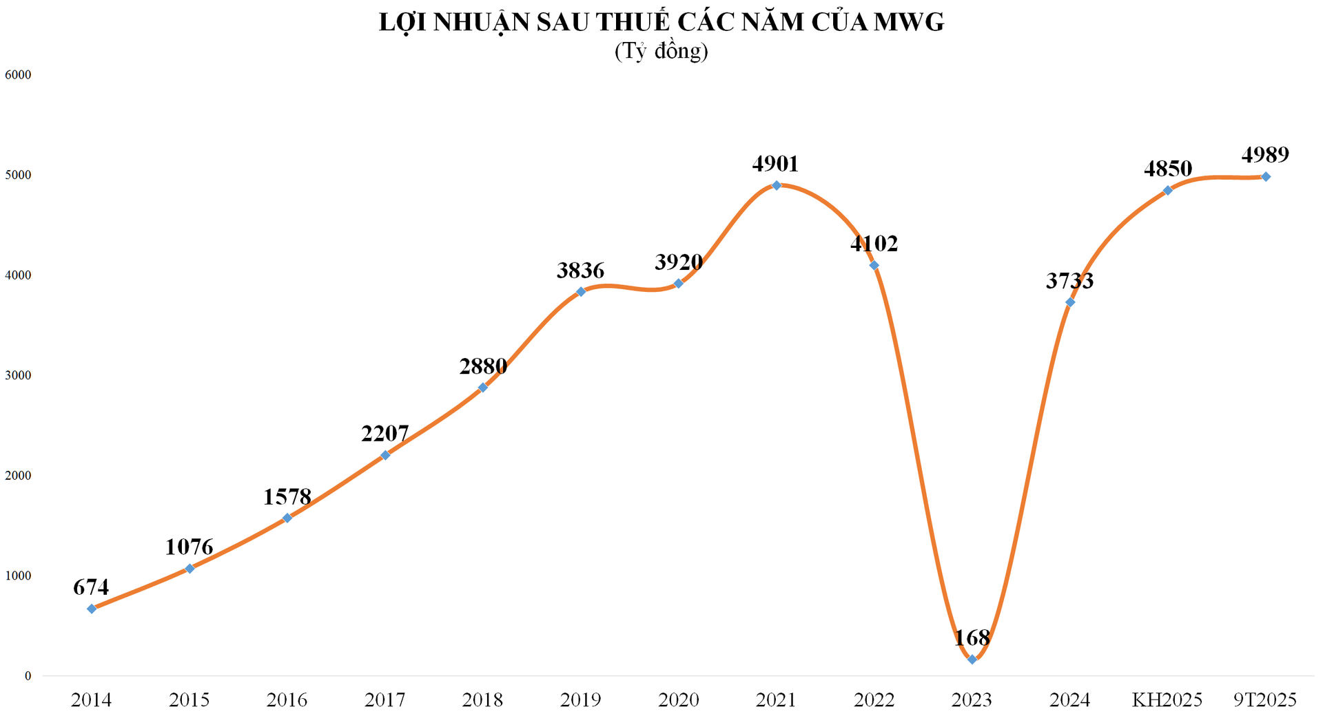 Lũy kế 9 tháng năm 2025, lợi nhuận sau thuế của Thế Giới Di Động đạt 4.989 tỷ đồng, tăng 73% so với cùng kỳ năm 2024 và vượt kế hoạch lãi đề ra cho cả năm.