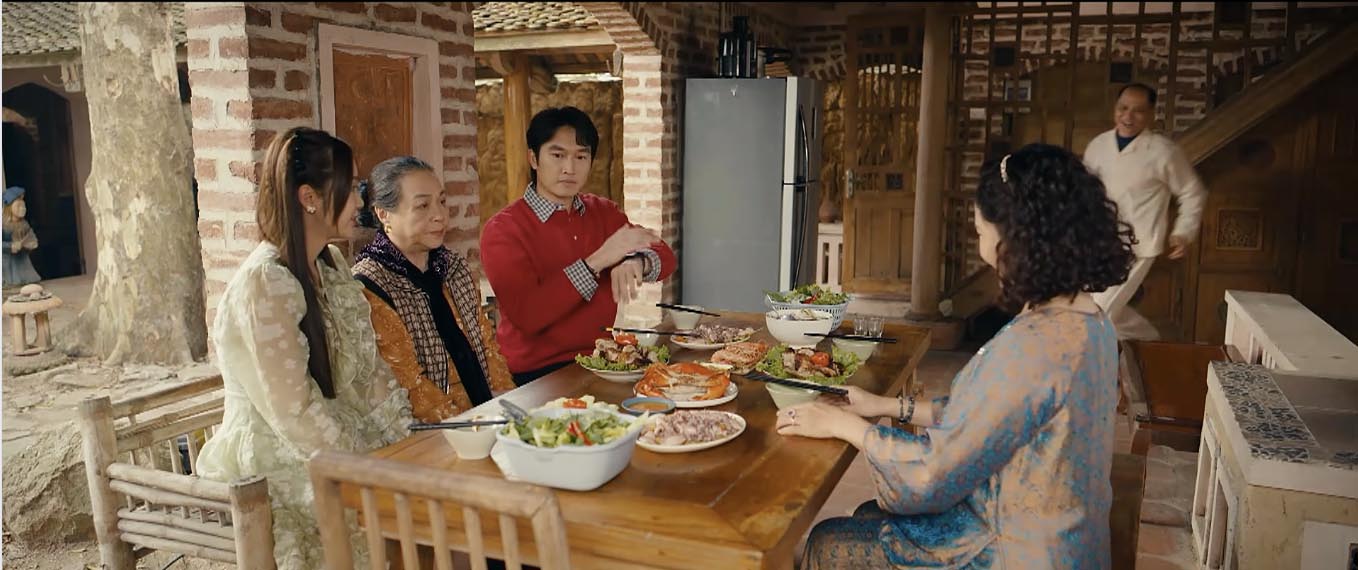 Trong lúc ăn cơm, khi bà Diện cố tình sắp xếp Hồng ngồi cạnh Trung (Đình Tú), bà Chính lại giả vờ lạnh để Trung đổi chỗ, ngồi ra ngoài chắn gió.