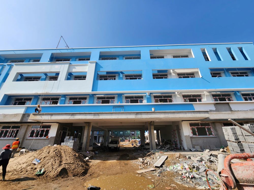 Ghi nhận tại công trường, phần thô của ngôi trường đã cơ bản hoàn thành. Các đội ngũ thi công đang đẩy nhanh giai đoạn hoàn thiện bao gồm các hạng mục: sơn tường, lát gạch, lắp đặt hạ tầng kỹ thuật và các công trình phụ trợ.