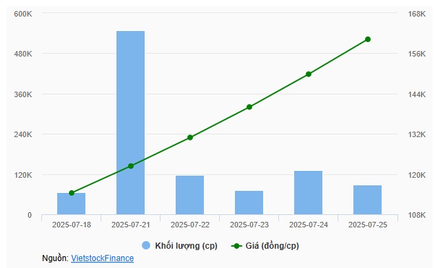 Đâu là cổ phiếu tăng mạnh nhất trong tuần phá đỉnh của VN-Index? SJS (CTCP SJ Group) đã tăng trần liên tiếp 6 phiên sau thông tin chia cổ tức gộp 5 năm. Trong tuần phá đỉnh của Index, SJS ghi nhận mức tăng trên 40%, dừng lại ở 160,200 đồng/cp tại kết phiên 25/07.