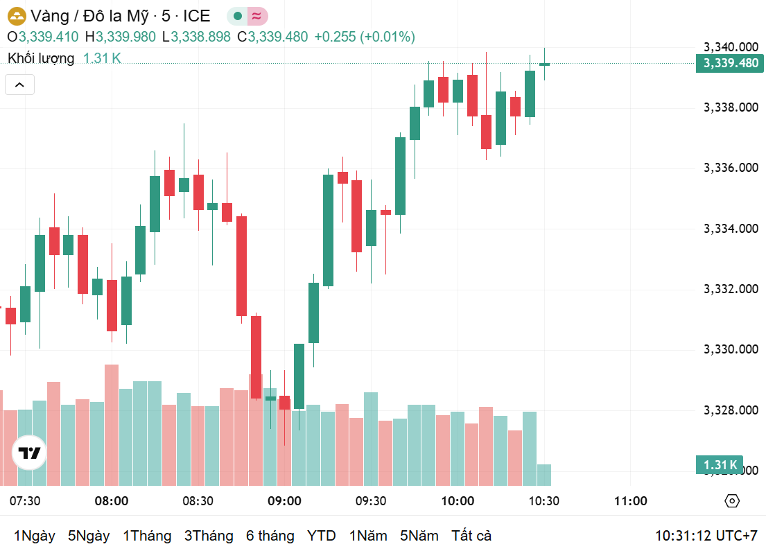 Trên thị trường quốc tế, thời điểm 10h30 hôm nay (ngày 11/6, giờ Việt Nam), theo Kitco.com, giá vàng thế giới giao dịch ở mức 3.339 USD/ounce, tăng 5,33 USD/ounce so với phiên trước. Quy đổi theo tỷ giá Vietcombank, giá vàng thế giới đang ở khoảng 105,43 triệu đồng/lượng.