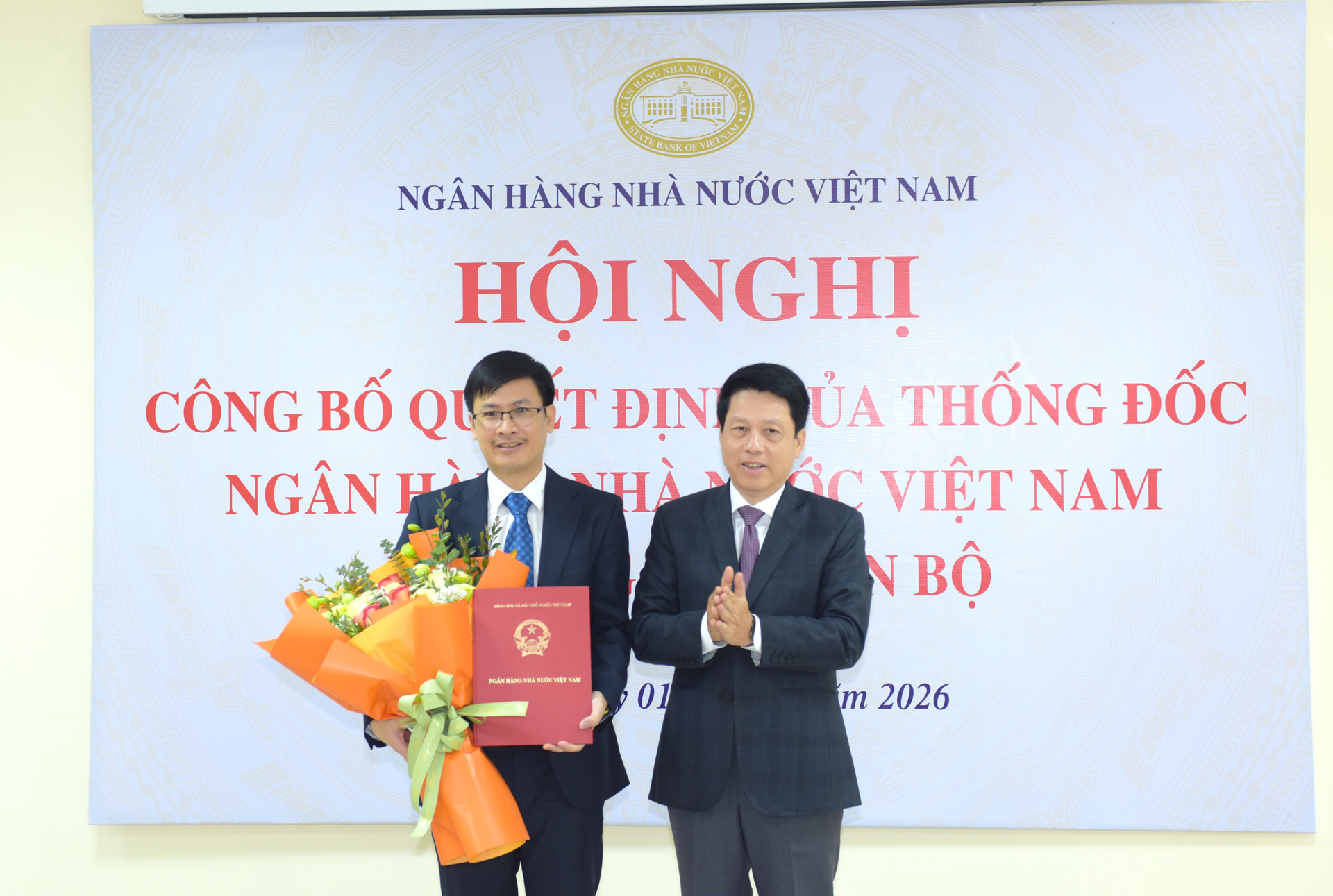 Phó Thống đốc Phạm Tiến Dũng đã trao Quyết định và chúc mừng ông Hoàng Minh Tiến