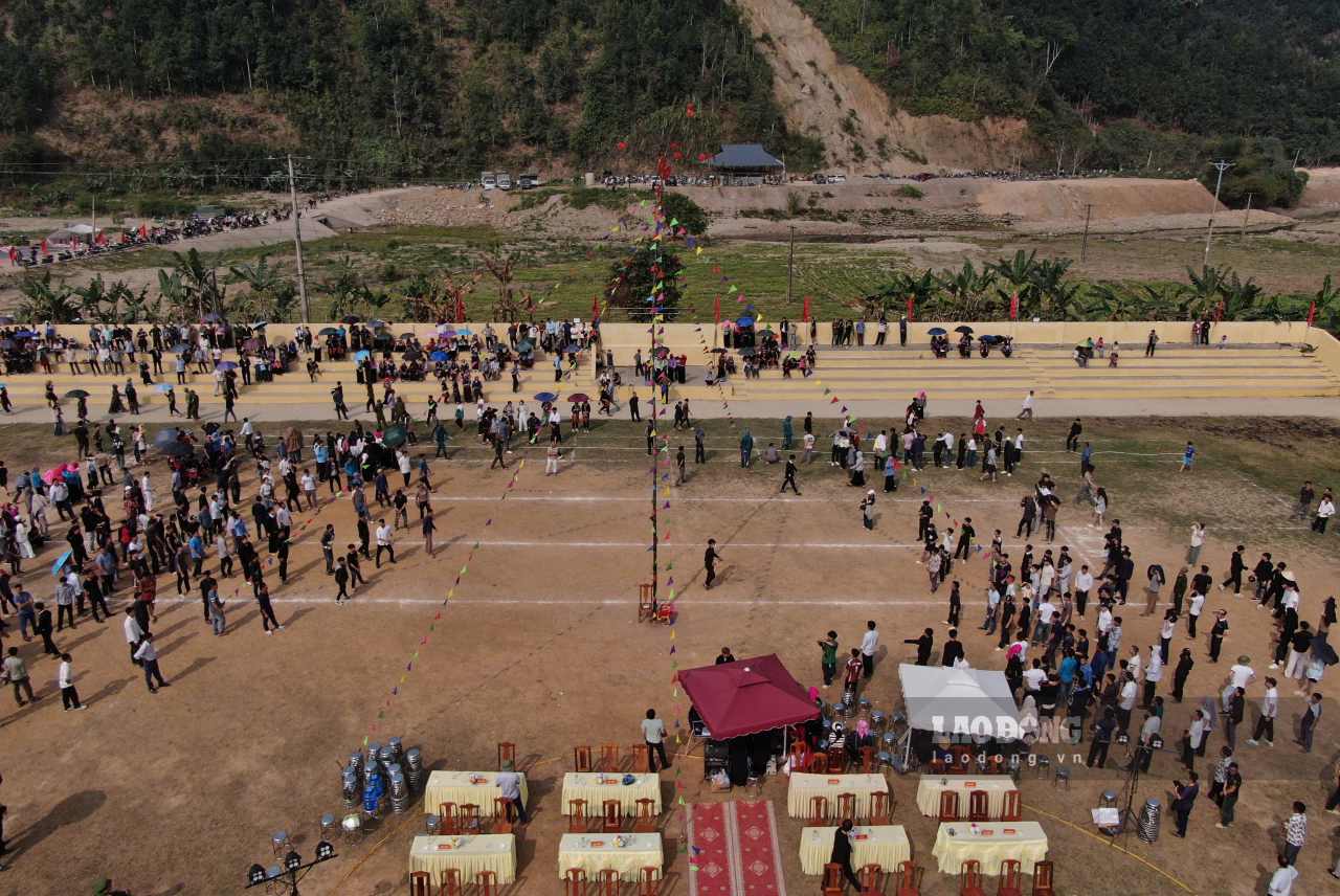 Ghi nhận của phóng viên, từ 6h30 sáng 2.3, đồng bào các dân tộc nơi đây cùng du khách nô nức kéo đến sân vận động xã để đón xem lễ hội.