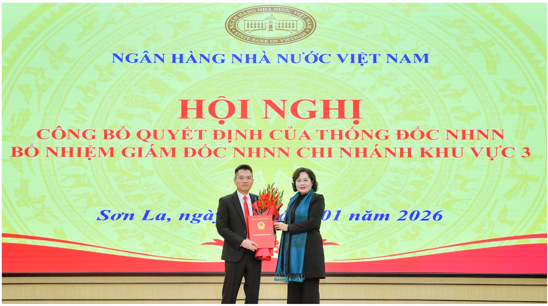 Chiều ngày 26/1, tại Sơn La, Ngân hàng Nhà nước (NHNN) tổ chức Hội nghị công bố, trao quyết định của Thống đốc NHNN bổ nhiệm Giám đốc NHNN Khu vực 3.