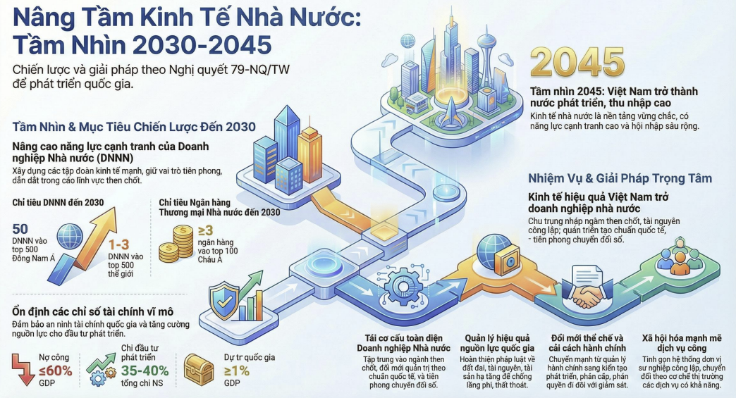 Sự thay đổi này được cụ thể hóa bằng việc phân tách rõ hai nhóm doanh nghiệp. Nhóm doanh nghiệp chiến lược - nơi Nhà nước nắm giữ trên 50% đến 100% vốn điều lệ, bao gồm các lĩnh vực then chốt như quốc phòng – an ninh, năng lượng, tài chính – ngân hàng và hạ tầng giao thông trọng điểm. Với nhóm này, Nhà nước không đặt mục tiêu thoái vốn mà hướng tới việc tập trung nguồn lực để hình thành các tập đoàn quy mô lớn, có năng lực cạnh tranh trong khu vực.
